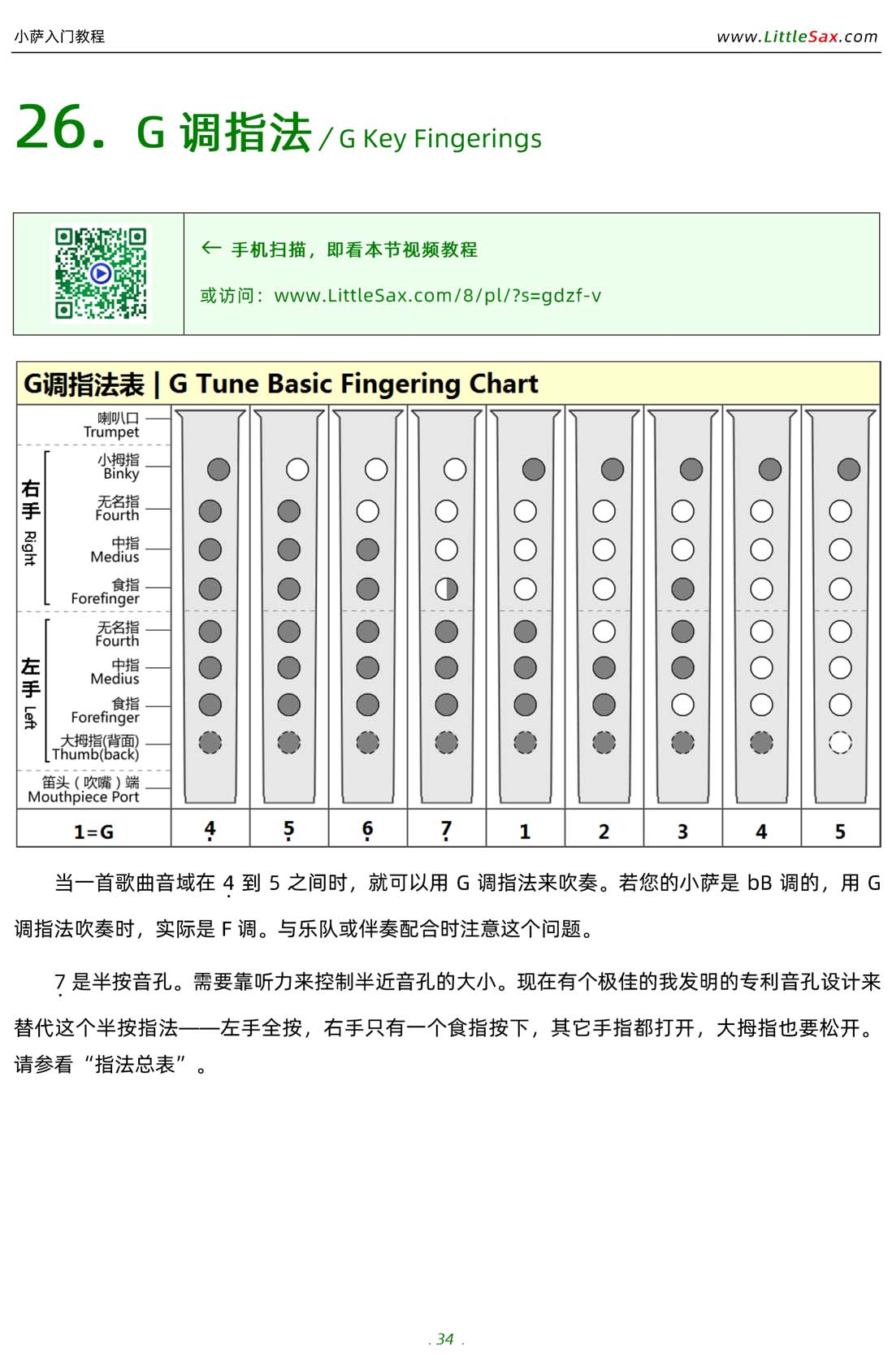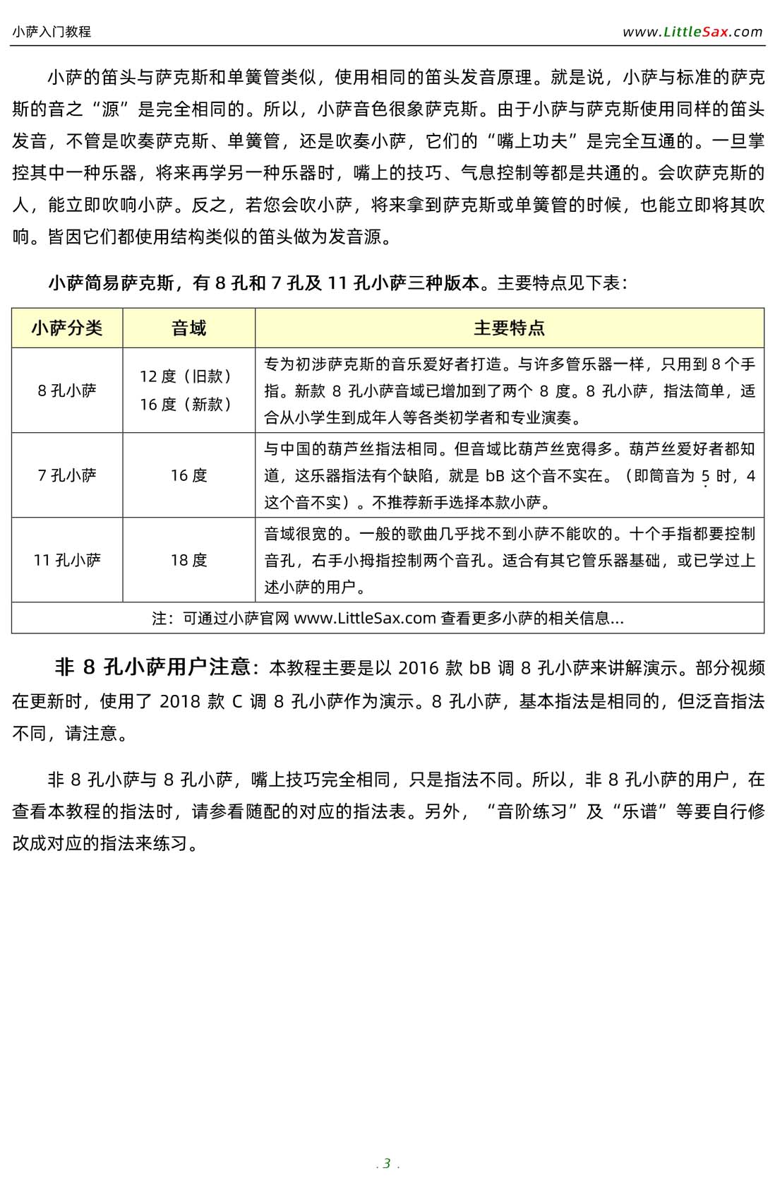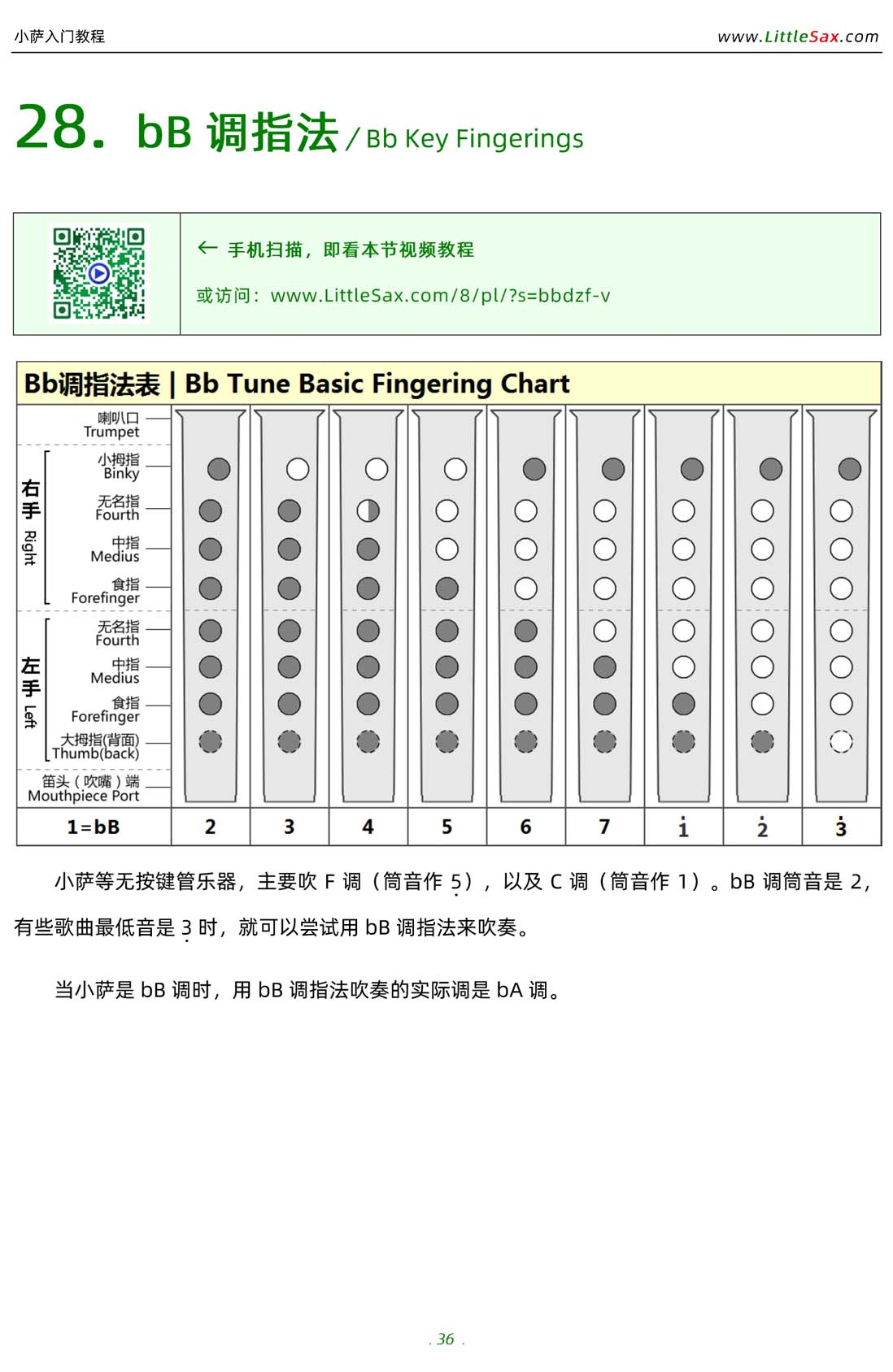 bB调8孔小萨指法总表 | 8-Hole LittleSax (Key Bb) Fingering Charts