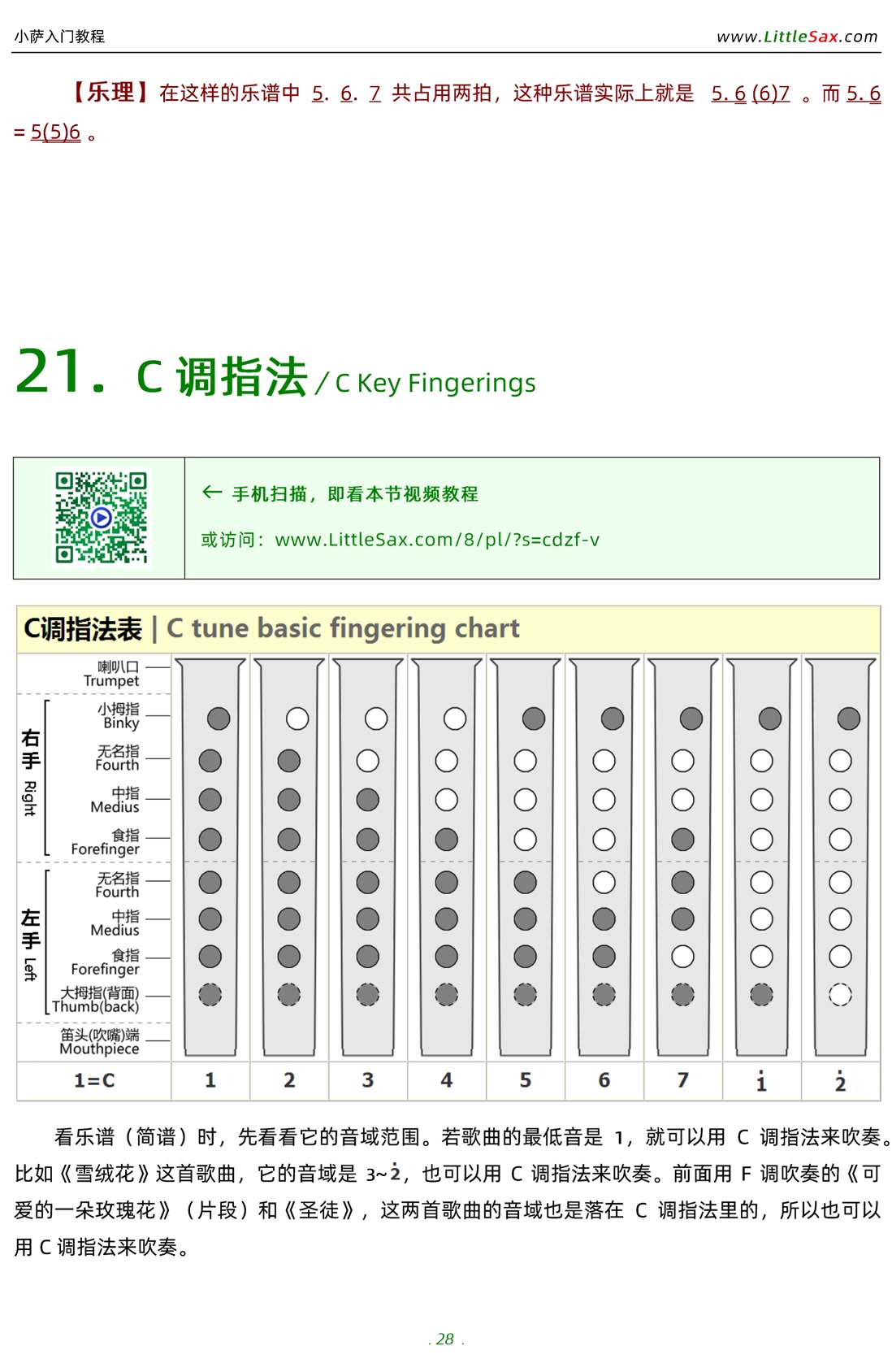 C调7孔小萨指法总表 | 7-Hole LittleSax (Key C) Fingering Charts