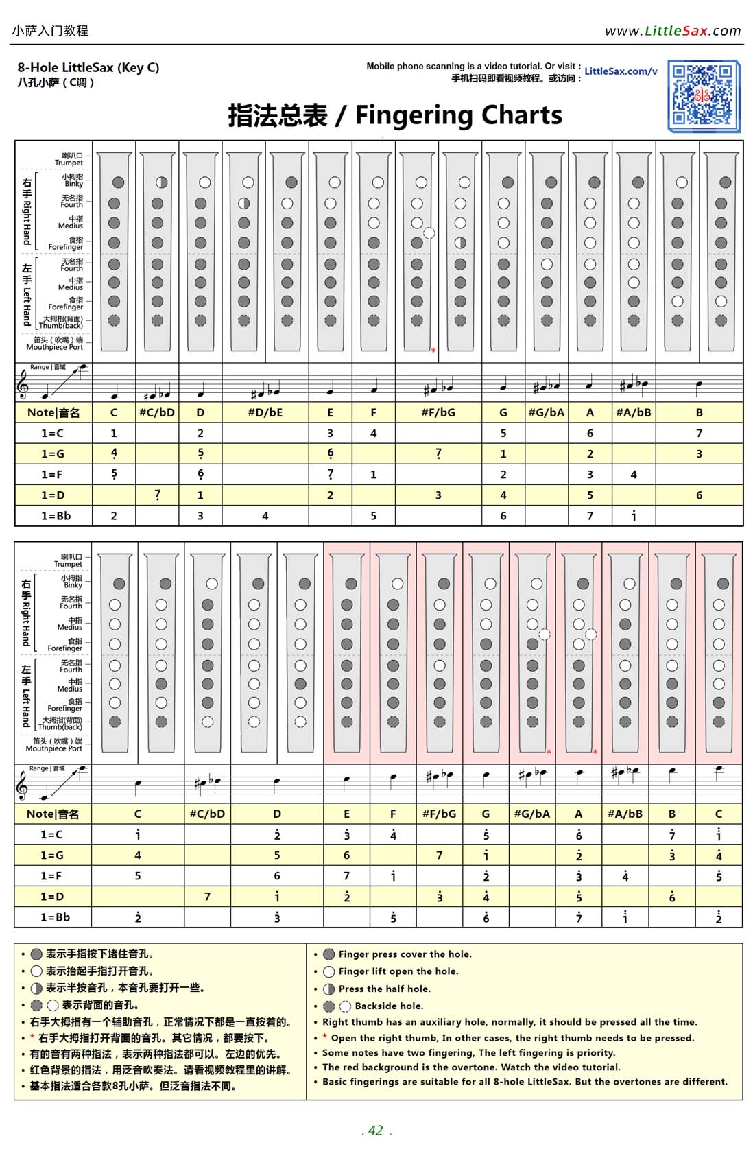 C调8孔小萨指法总表 | 8-Hole LittleSax (Key C) Fingering Charts